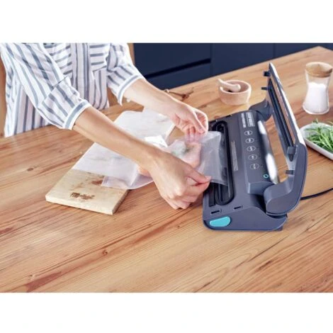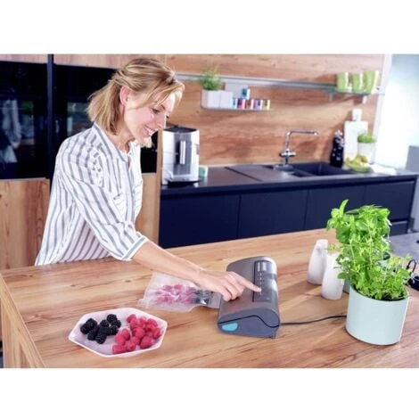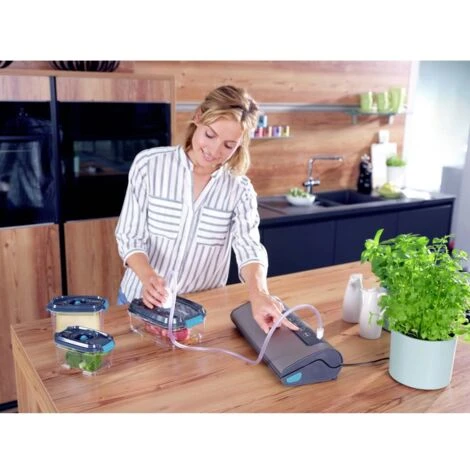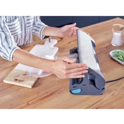 Godetevi la freschezza del puro Leifheit con il dispositivo a vuoto Vacu Power 500. Questo rende gli alimenti fino a cinque volte più resistenti, senza conservanti. L’efficiente pompa XXL-Power ha una potenza di dodici litri al minuto e consente un vuoto particolarmente rapido. Il processo di vuoto può essere interrotto in qualsiasi momento tramite il pulsante di arresto. Il display touch con sensore acustico è facile da usare. Questo consente, tra l’altro, di regolare il processo di vuoto in modo personalizzato, Ideal per alimenti delicati, anche grazie alla funzione pulse. La doppia saldatura del dispositivo a vuoto Vacu Power 500 garantisce una stabilità particolare. Oltre a sacchetti e pellicole, con il dispositivo Leifheit è possibile anche svuotare i contenitori sottovuoto. Per questo motivo sono disponibili separatamente lattine e un tubo flessibile Leifheit. Include dieci sacchetti di Leifheit gratuiti (20 x 30 cm). Testo tradotto automaticamente
