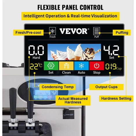 - 2 Serbatoi & Gusti 2+1: la macchina per gelato soft serve 3 gusti: 2 gusti singoli e 1 gusto misto. Durante il processo di miscelazione, si può aggiungere i gusti preferiti, come vaniglia, fragola, cioccolato, mango, ecc.