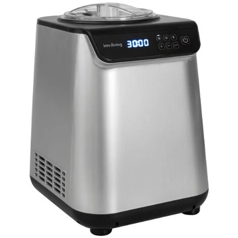 Macchina per gelato con compressore: Capacità: 1,2L. Gas refrigerante: R600a. Range temperatura di ra reddamento: -18°C~35°C. Coperchio trasparente per controllare la preparazione, con chiusura ermetica. Pannello di controllo digitale. Cestello estraibile. Rumorosità: 55dB(A) [rumorosità ambiente 17dB(A)]. Potenza: 135W. Alimentazione: 220V-240 ~ 50Hz. Dimensioni prodotto: 250x275x350mm