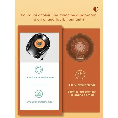 【Basso contenuto di grassi】 La macchina per popcorn funziona con la circolazione dell’aria calda, non funziona, quindi non c’è burro o olio grasso, riducendo le calorie e promuovere una dieta verde. Meno unto dei popcorn al microonde, grazie a questa macchina puoi preparare i tuoi popcorn freschi e croccanti.