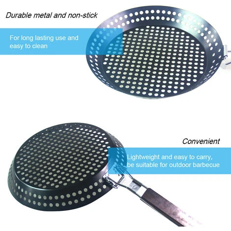 Utensili per grill: niente spiedini o il lavoro necessario per fare il barbecue. La padella grill facilita la cottura del cibo senza scivolare sulla griglia.
