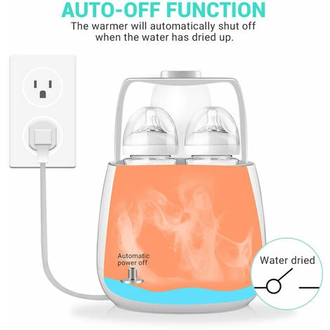 Funzionamento semplice: basta premere il pulsante per riscaldare il latte e nessun pulsante o impostazione complicata. Tutte le funzioni possono essere riservate.Design a doppio biberon: due biberon possono essere riscaldati contemporaneamente, ideale per nutrire i gemelli.Riscaldamento rapido ma uniforme: scalda il latte in modo uniforme per ridurre la perdita di nutrienti e il tuo bambino piange in tempo.Materiali di sicurezza: realizzati di materiale PP per uso alimentare, più amichevole e sicuro per i tuoi piccoli.Display a LED: la temperatura dell’acqua viene visualizzata sul display a LED e la durata della temperatura costante può essere regolata secondo necessità (si consigliano 0-2 ore).Protezione contro il surriscaldamento : Se l’acqua nel riscaldatore è secca o se la temperatura è troppo alta, si spegne automaticamente.