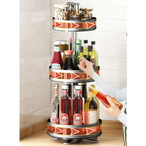 CONTENUTO CONFEZIONE:1 x Supporto Dispenser Contenitore Porta spezie in Metallo 3 Ripiani Girevoli Quadrato