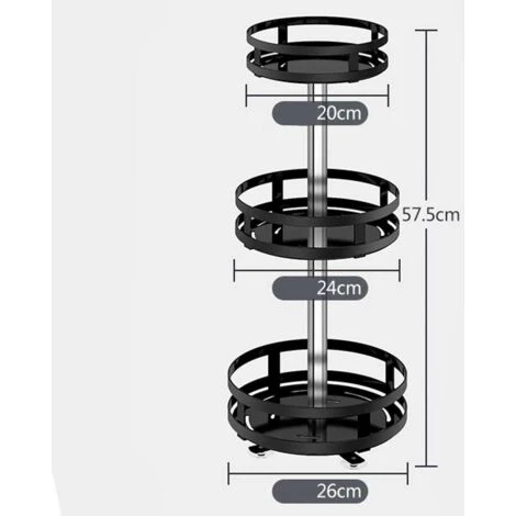 SPECIFICHE PRODOTTO:Marca: BakajiDimensioni: 24 x 24 x 57 cmMateriale: MetalloColore: NeroNecessita di montaggio: Si3 Ripiani capienti a cesto quadratoRipiani girevoli a 360°Molto versatile può essere impiegato negli ambiti più diversiDesign moderno e minimale Utile per conservare salse e spezieBase con ventose